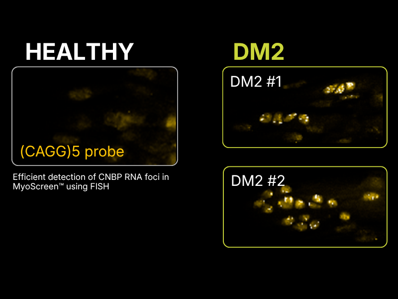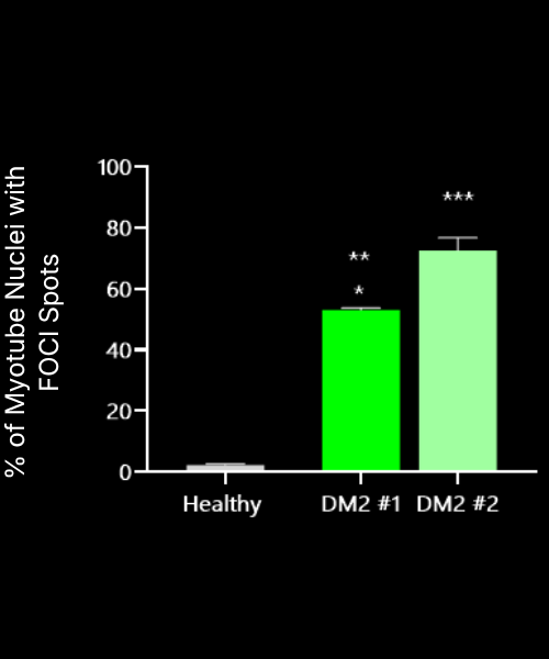 CYTOO’s MyoScreen™ platform models DM2 pathology in micropatterned primary human myotubes, enabling high-content detection of RNA foci, splicing dysregulation and downstream functional defects giving your program the cellular-level evidence it needs to move forward.